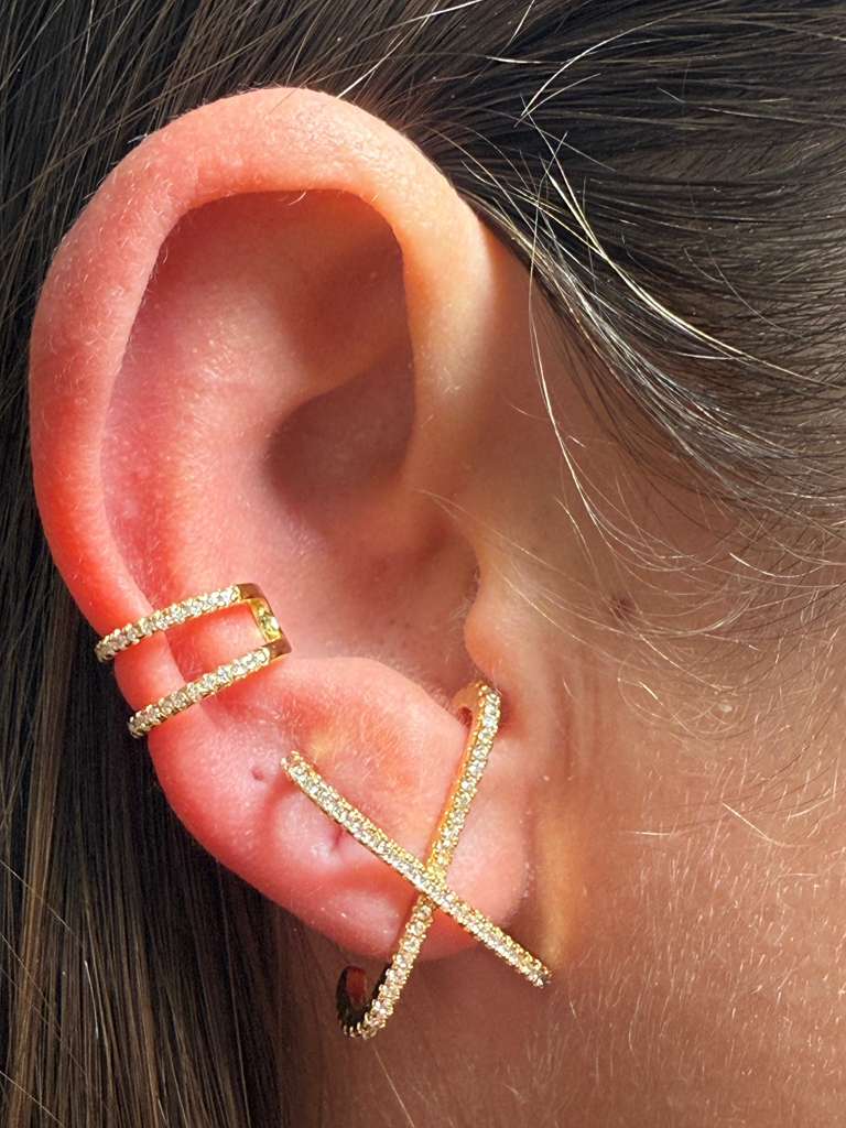 Elevate your ear game with the Dúo Glitter earcuff—a stunning accessory that catches light from every angle. Crafted with shimmering glitter detailing, this piece adds instant glamour to any look, whether you're heading out for a night on the town or making a statement at everyday moments. The sleek earcuff design offers a modern twist on classic elegance, requiring no piercing for effortless wear. Perfect for those who crave sparkle without compromise, the Dúo Glitter transforms your style with minimal effort and maximum impact.
